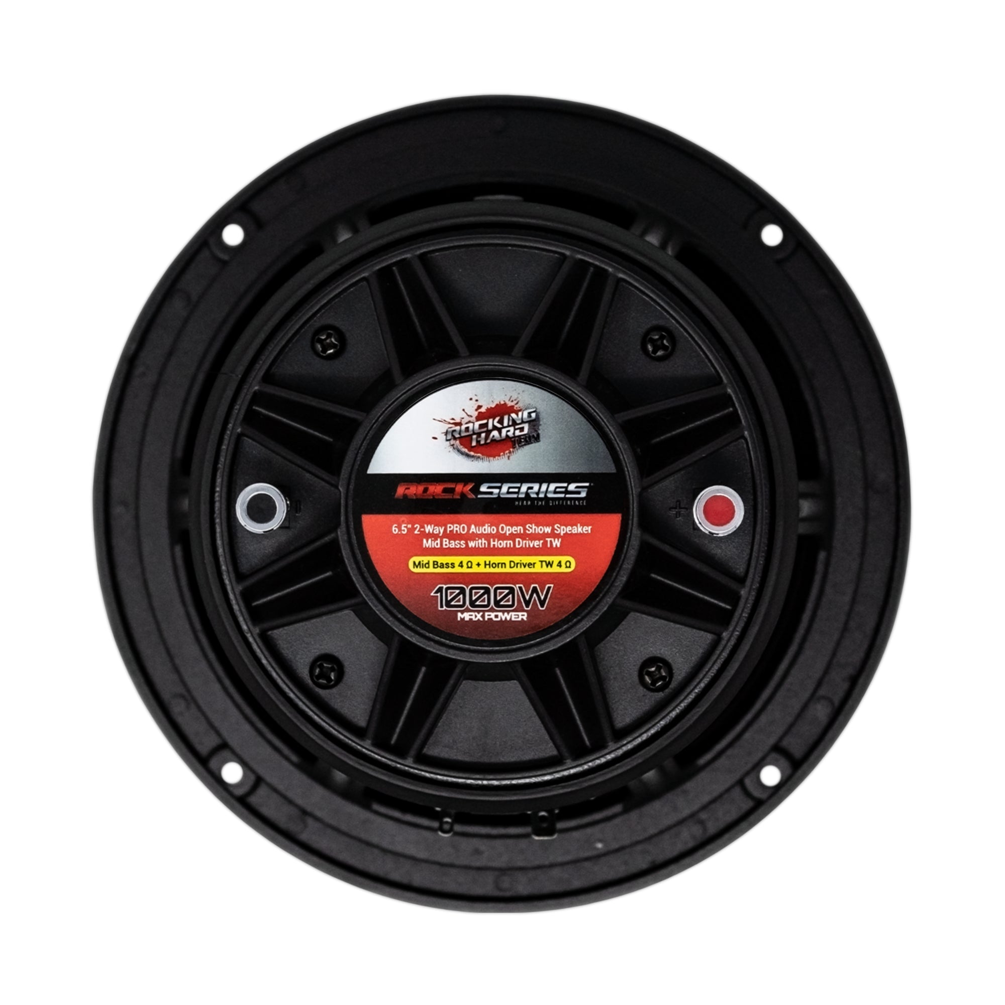 El Rock Series RKS R65OST es un poderoso medio rango Open Show de 6.5 pulgadas con tweeter tipo cuerno integrado, ideal para quienes buscan volumen, claridad y agresividad en su sistema. Su diseño combina medio bajo y driver en una sola pieza para ahorrar espacio sin sacrificar potencia. Con alta sensibilidad y conectores directos, aprovecha al máximo los Watts de tu amplificador y ofrece un sonido fuerte, detallado y listo para competir.