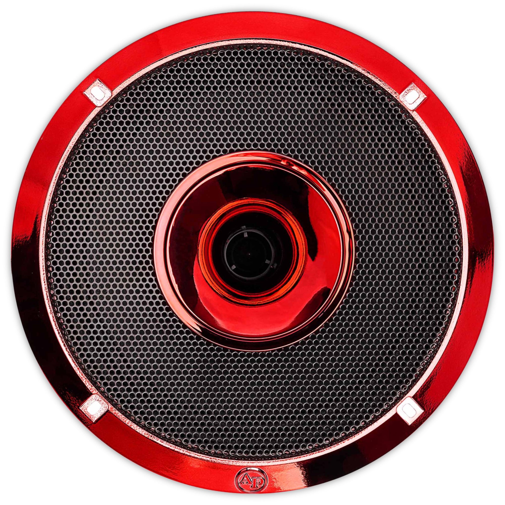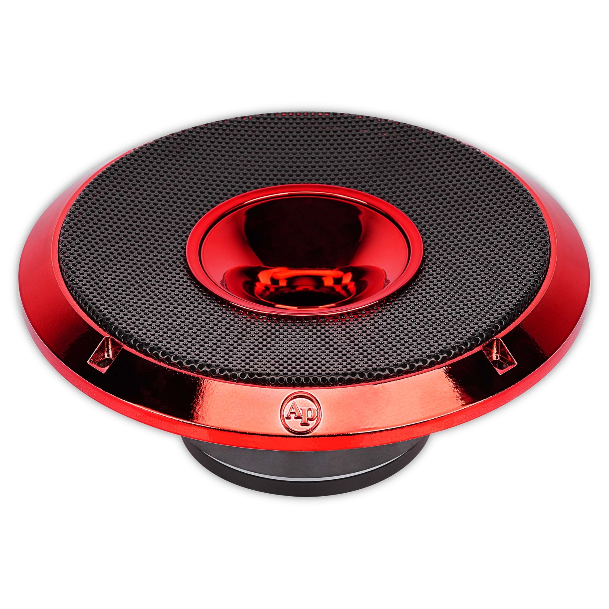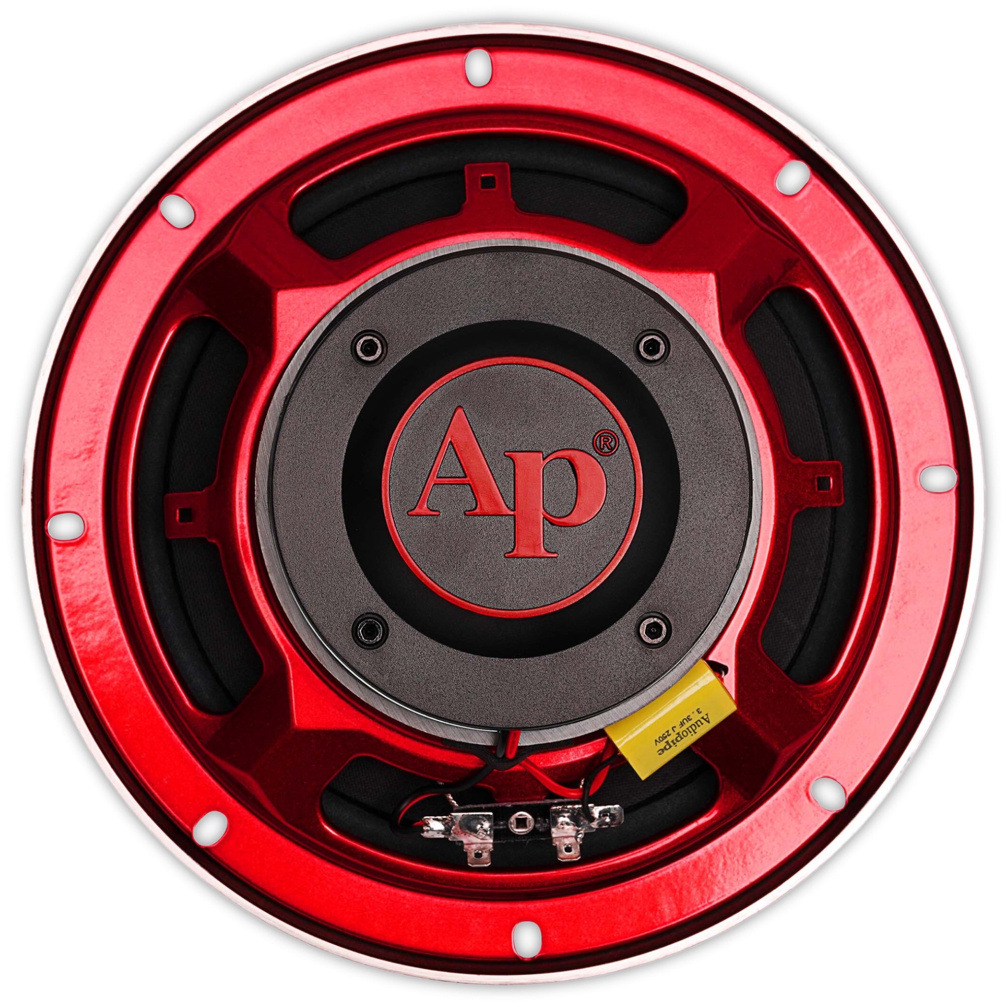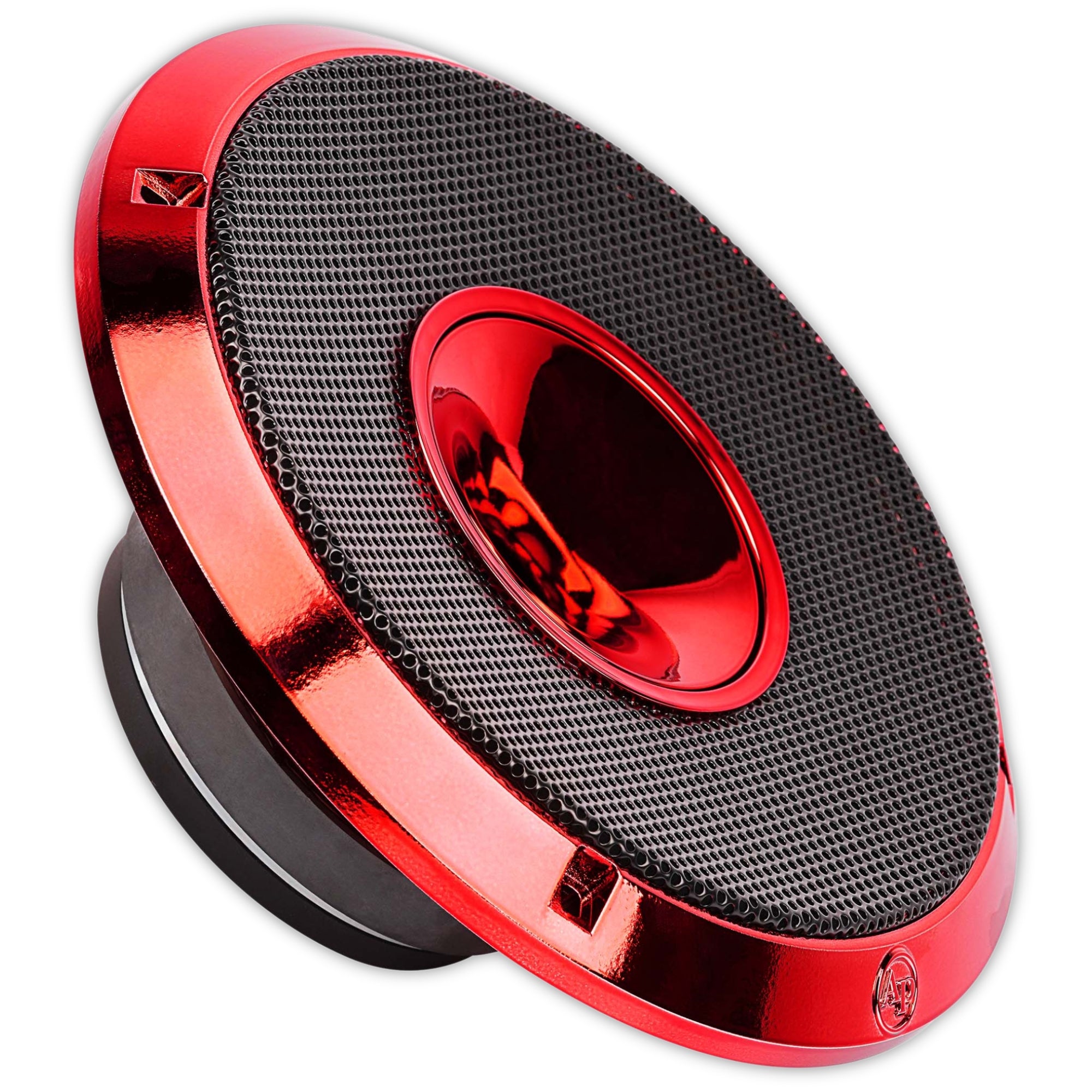 - Diseño en Rojo Candy: Acabado moderno en rojo candy con el logotipo rojo 'AP' para un toque estilizado en tu sistema de audio.
