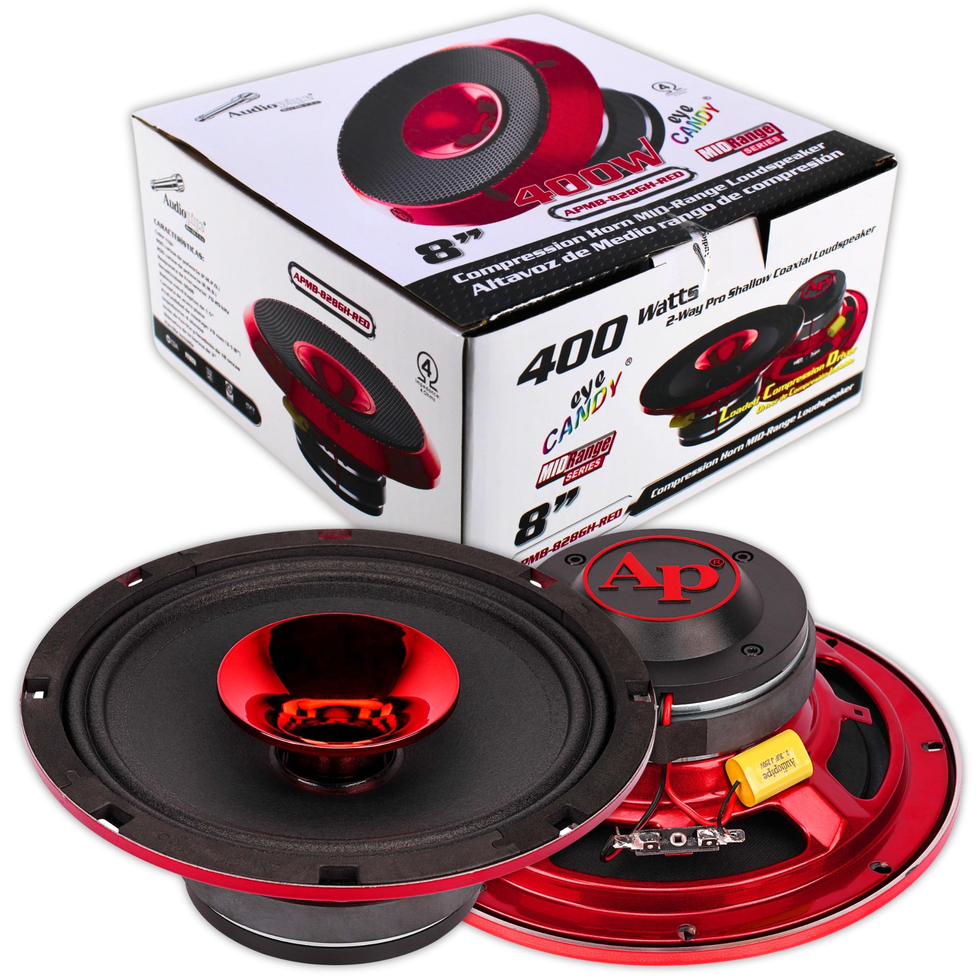 - 1 Bocina de Compresión de Rango Medio Audiopipe APMB-828GH-RED