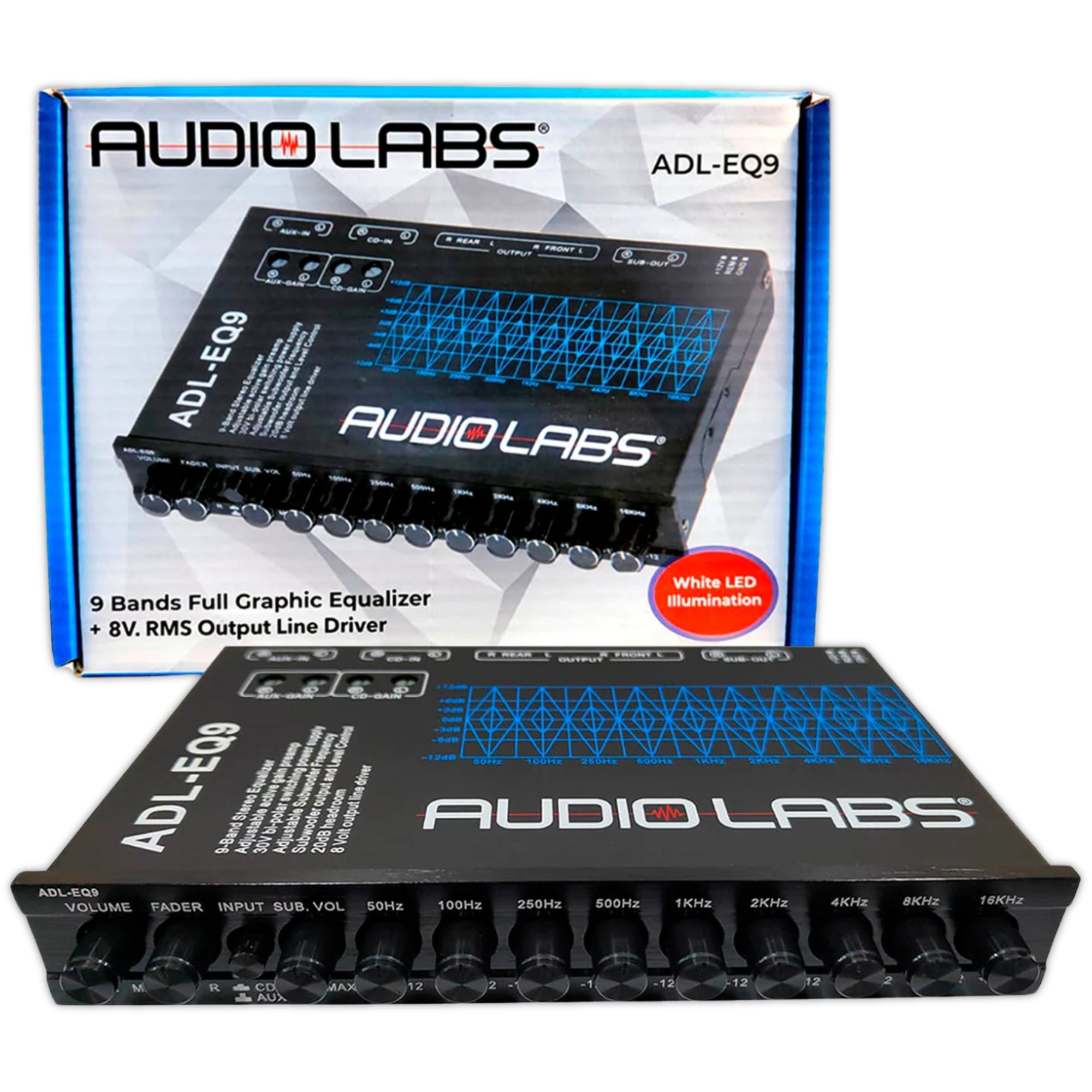 Optimiza el sonido de tu sistema de audio automotriz con el Audio Labs ADL-EQ9. Este ecualizador gráfico de 9 bandas está diseñado para ofrecer precisión y flexibilidad en la configuración del audio, con un diseño compacto y funcional ideal para mejorar la calidad sonora en cualquier entorno automotriz.