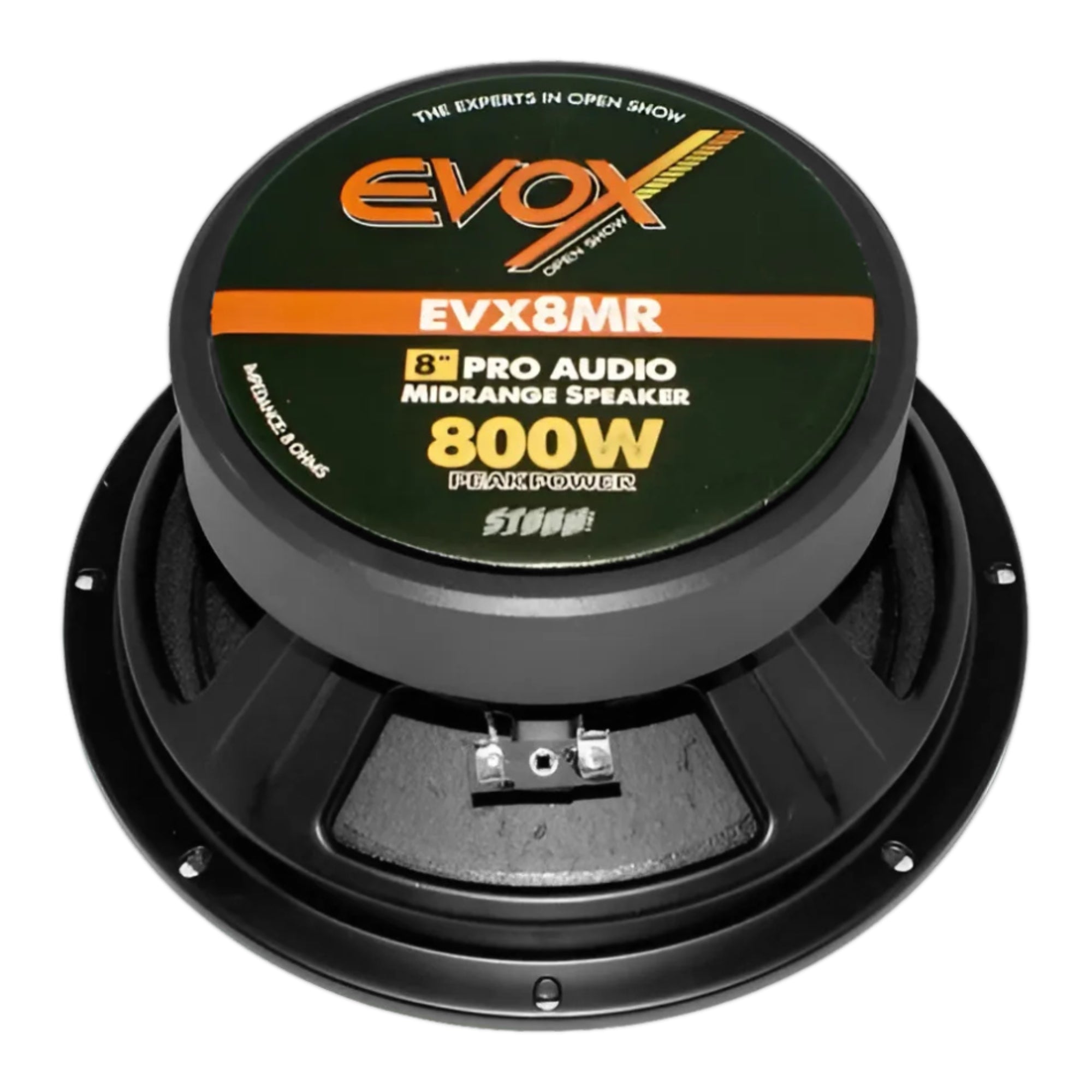 El Evox EVX8MR es un medio rango Open Show de 8 pulgadas diseñado para entregar sonido potente, claro y con gran presencia, ideal para sistemas exigentes que buscan alto volumen sin sacrificar definición. Forma parte de la línea Evox Pro Audio, reconocida por su desempeño en configuraciones de competencia y exhibición.
